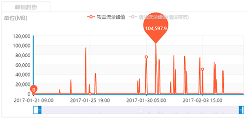 | 70Gb <DDoS峰值 ≤80Gb | 230,000QPS <攻击峰值 ≤260,000QPS | 10500 |